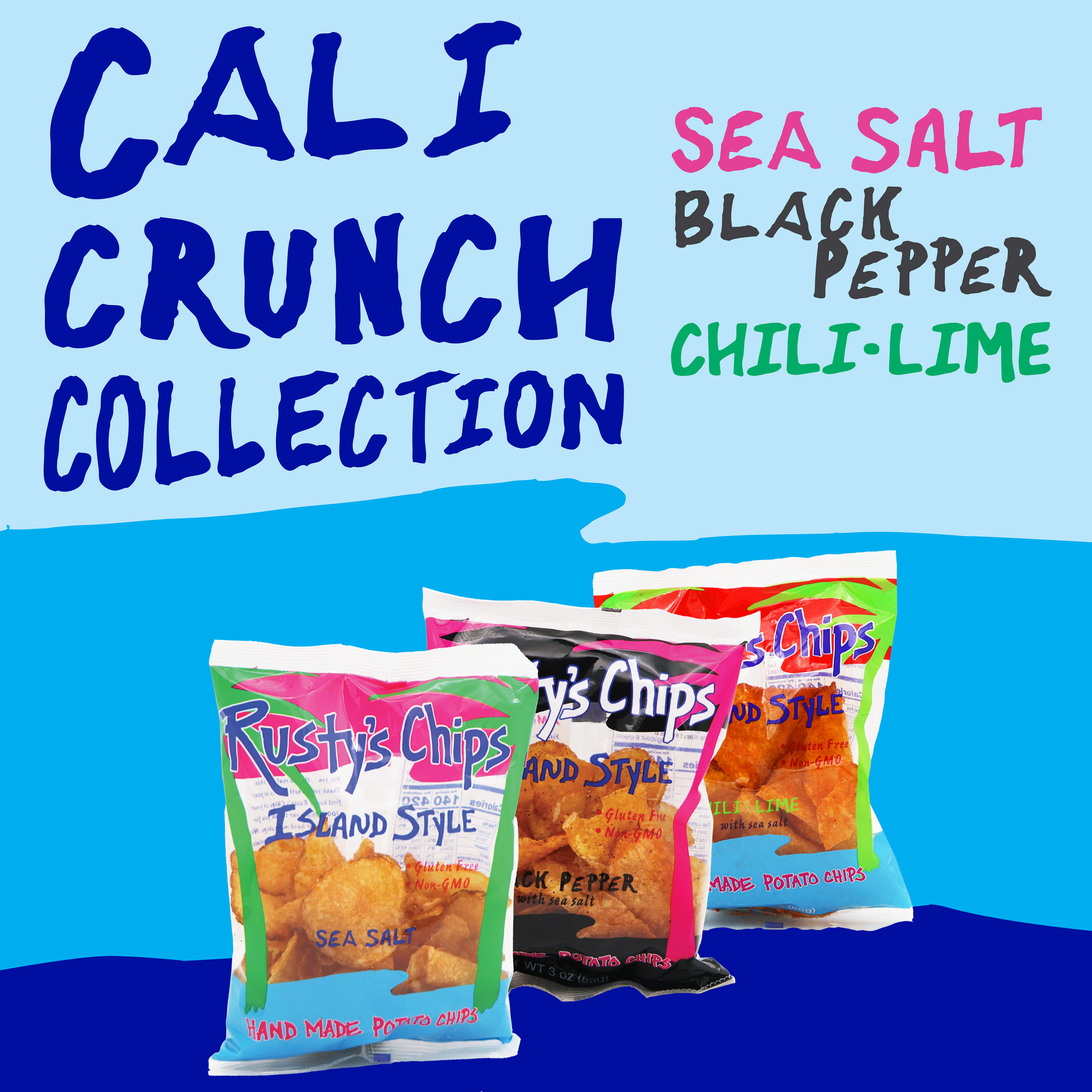 The Cali Crunch collection includes the following potato chip flavors: